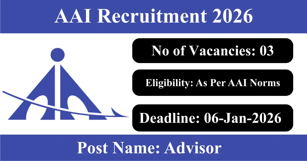 AAI Recruitment 2026: Apply for 3 Advisor vacancies. Airports Authority of India invited applications from eligible and interested candidates to fill up Advisor Posts through AAI official notification December 2025. Job seekers who are looking for a career in Delhi – New Delhi Government can make use of this opportunity. Interested candidates can send an E-Mail on or before 06-Jan-2026