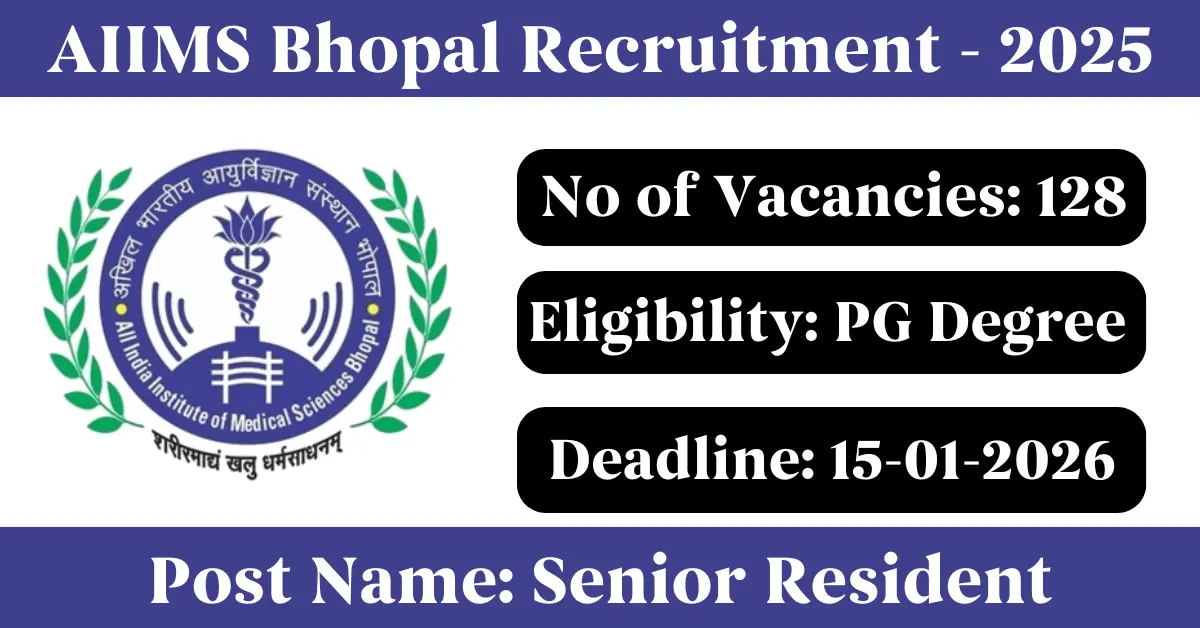 AIIMS Bhopal Recruitment 2025: Apply for 128 Senior Resident vacancies. All India Institute of Medical Sciences Bhopal invited applications from eligible and interested candidates to fill up Senior Resident Posts through AIIMS Bhopal official notification December 2025. Job seekers who are looking for a career in Bhopal – Madhya Pradesh Government can make use of this opportunity. Interested candidates can Apply Online on or before 15-Jan-2026