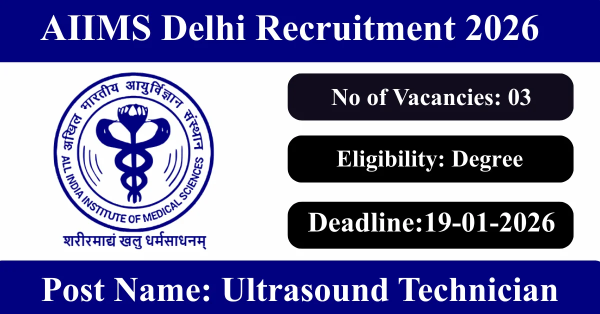 AIIMS Delhi Recruitment 2026: Apply for 3 Ultrasound Technician vacancies. All India Institute of Medical Sciences Delhi invited applications from eligible and interested candidates to fill up Ultrasound Technician Posts through AIIMS Delhi official notification January 2026. Job seekers who are looking for a career in Delhi – New Delhi Government can make use of this opportunity. Interested candidates can send an E-Mail on or before 19-Jan-2026