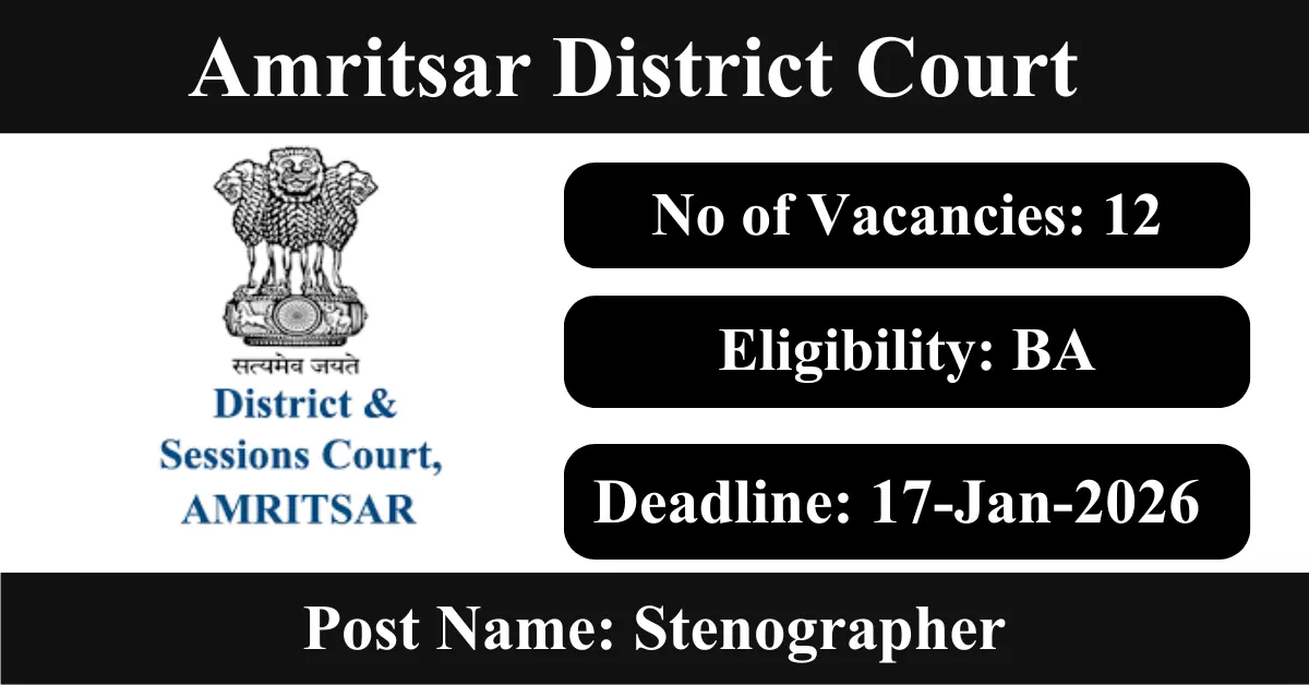 Amritsar District Court Recruitment 2026: Apply for 12 Stenographer Grade III vacancies. Amritsar eCourt invited applications from eligible and interested candidates to fill up Stenographer Grade III Posts through Amritsar District Court official notification December 2025. Job seekers who are looking for a career in Amritsar – Punjab Government can make use of this opportunity. Interested candidates can Apply Offline on or before 17-Jan-2026