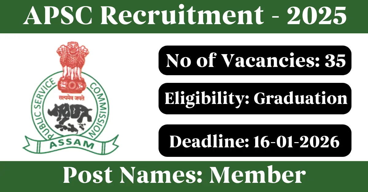APSC Recruitment 2025: Apply for 35 Member vacancies. Assam Public Service Commission invited applications from eligible and interested candidates to fill up Member Posts through APSC official notification December 2025. Job seekers who are looking for a career in Assam Government can make use of this opportunity. Interested candidates can Apply Online on or before 16-Jan-2026