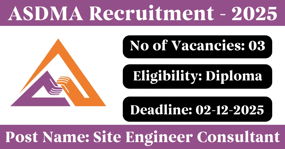 ASDMA Recruitment 2025: Apply for 3 Site Engineer Consultant vacancies. Assam State Disaster Management Authority invited applications from eligible and interested candidates to fill up Site Engineer Consultant Posts through ASDMA official notification November 2025. Job seekers who are looking for a career in Guwahati – Assam Government can make use of this opportunity. Interested candidates can Apply Offline on or before 02-Dec-2025