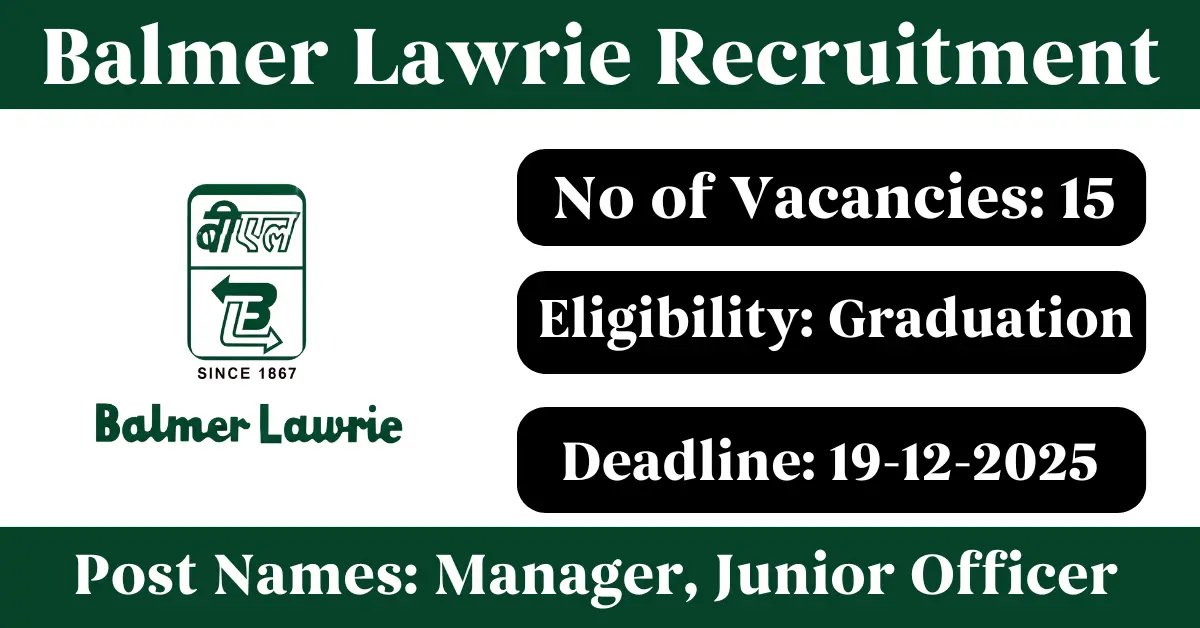 Balmer Lawrie Recruitment 2025: Apply for 15 Manager, Junior Officer vacancies. Balmer Lawrie & Co. Limited invited applications from eligible and interested candidates to fill up Manager, Junior Officer Posts through Balmer Lawrie official notification November 2025. Job seekers who are looking for a career in Delhi – New Delhi, Kullu – Himachal Pradesh, Chennai – Tamil Nadu, Visakhapatnam – Andhra Pradesh, Bhubaneswar, Rourkela – Odisha, Bengaluru – Karnataka Government can make use of this opportunity. Interested candidates can Apply Online on or before 19-Dec-2025