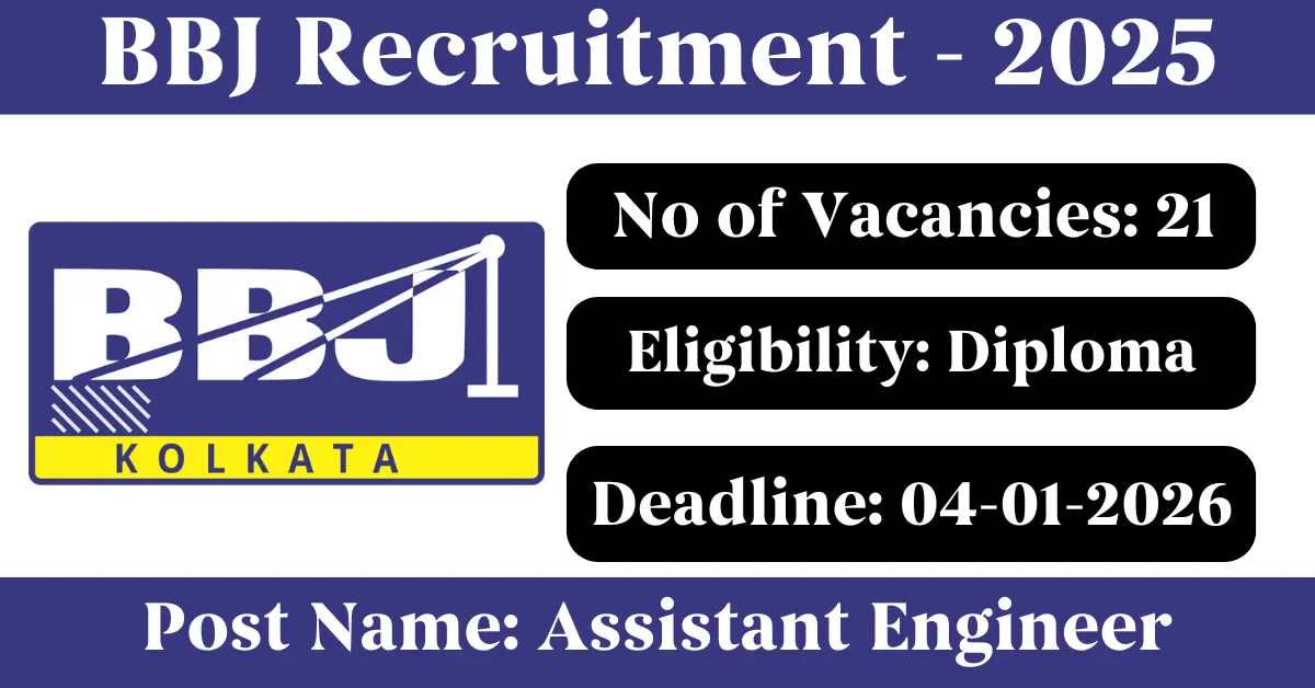 BBJ Recruitment 2025: Apply for 21 Assistant Engineer and Officer vacancies. The Braithwaite Burn & Jessop Construction Company Limited invited applications from eligible and interested candidates to fill up Assistant Engineer and Officer Posts through BBJ official notification December 2025. Job seekers who are looking for a career in All India Government can make use of this opportunity. Interested candidates can send an E-Mail on or before 04-Jan-2026
