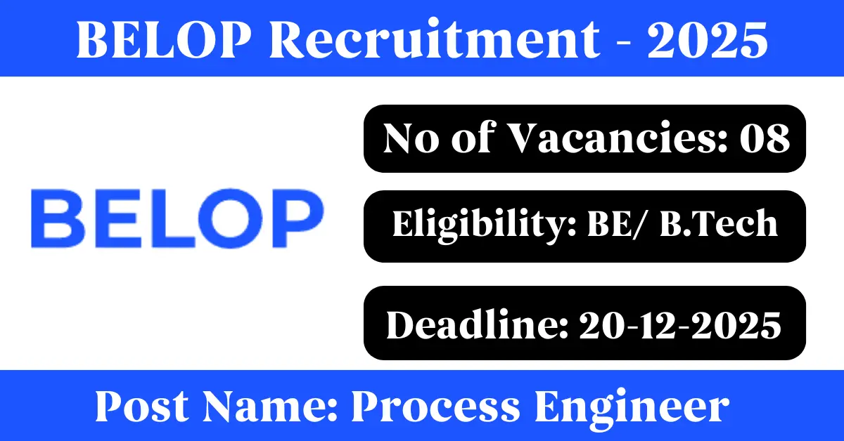 BELOP Recruitment 2025: Apply for 8 Engineer vacancies. BEL Optronic Devices Limited invited applications from eligible and interested candidates to fill up Engineer Posts through BELOP official notification November 2025. Job seekers who are looking for a career in Pune – Maharashtra Government can make use of this opportunity. Interested candidates can Apply Offline on or before 20-Dec-2025