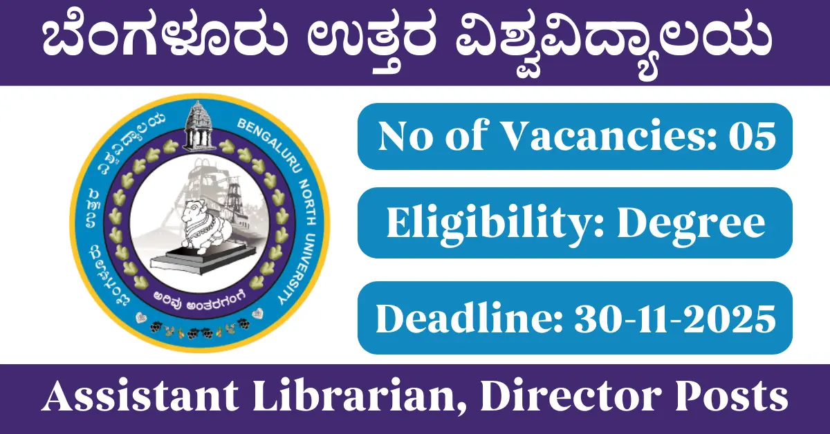 Bengaluru North University Recruitment 2025: Apply for 5 Assistant Librarian, Physical Director vacancies. Bengaluru North University invited applications from eligible and interested candidates to fill up Assistant Librarian, Physical Director Posts through Bengaluru North University official notification November 2025. Job seekers who are looking for a career in Kolar, Chikkaballapur, Bengaluru- Karnataka Government can make use of this opportunity. Interested candidates can Apply Offline on or before 30-Nov-2025