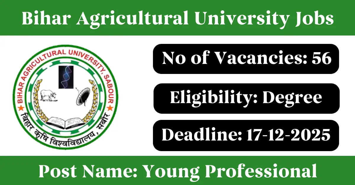 Bihar Agricultural University Recruitment 2025: Apply for 56 Young Professional vacancies. Bihar Agricultural University invited applications from eligible and interested candidates to fill up Young Professional Posts through Bihar Agricultural University official notification December 2025. Job seekers who are looking for a career in Bhagalpur – Bihar Government can make use of this opportunity. Interested candidates can attend for Walk-in-interview on 17-Dec-2025