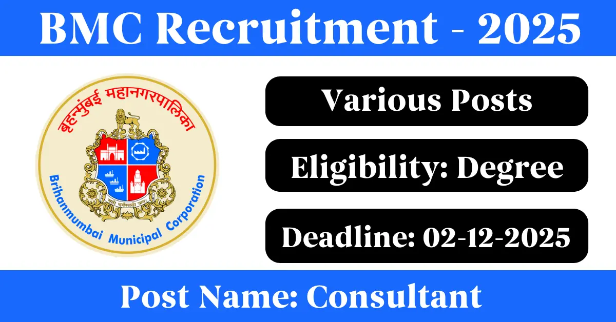 BMC Recruitment 2025: Apply for Various Consultant vacancies. Brihan Mumbai Municipal Corporation invited applications from eligible and interested candidates to fill up Consultant Posts through BMC official notification November 2025. Job seekers who are looking for a career in Mumbai – Maharashtra Government can make use of this opportunity. Interested candidates can Apply Online on or before 02-Dec-2025