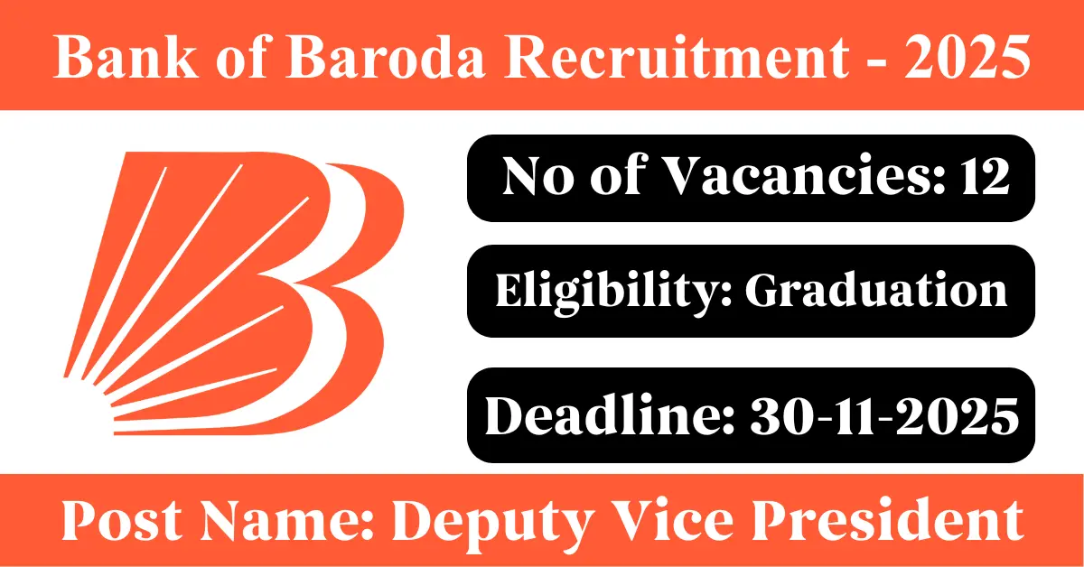 BOB Recruitment 2025: Apply for 12 Vice President vacancies. Bank of Baroda invited applications from eligible and interested candidates to fill up Vice President Posts through BOB official notification November 2025. Job seekers who are looking for a career in Mumbai – Maharashtra Government can make use of this opportunity. Interested candidates can Apply Online on or before 30-Nov-2025