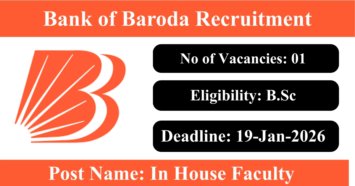 BOB Recruitment 2026: Apply for 1 In House Faculty vacancies. Bank of Baroda invited applications from eligible and interested candidates to fill up In House Faculty Posts through BOB official notification January 2026. Job seekers who are looking for a career in Alirajpur – Madhya Pradesh Government can make use of this opportunity. Interested candidates can Apply Offline on or before 19-Jan-2026
