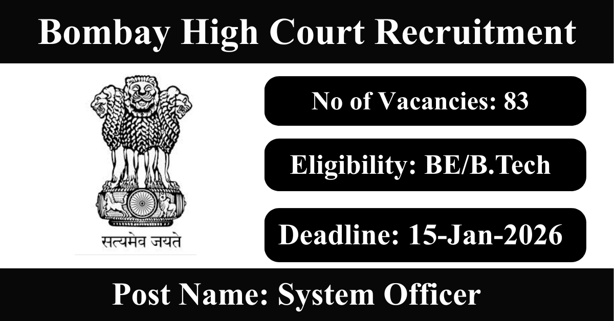 Bombay High Court Recruitment 2026: Apply for 83 System Officer vacancies. Bombay High Court invited applications from eligible and interested candidates to fill up System Officer Posts through Bombay High Court official notification January 2026. Job seekers who are looking for a career in Maharashtra Government can make use of this opportunity. Interested candidates can Apply Online on or before 15-Jan-2026
