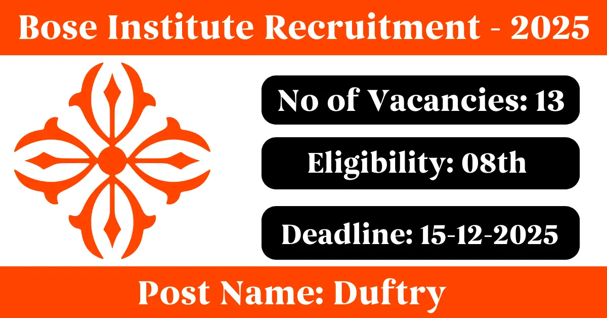 Bose Institute Recruitment 2025: Apply for 13 Duftry vacancies. Bose Institute invited applications from eligible and interested candidates to fill up Duftry Posts through Bose Institute official notification November 2025. Job seekers who are looking for a career in Kolkata – West Bengal Government can make use of this opportunity. Interested candidates can Apply Online/Offline on or before 15-Dec-2025