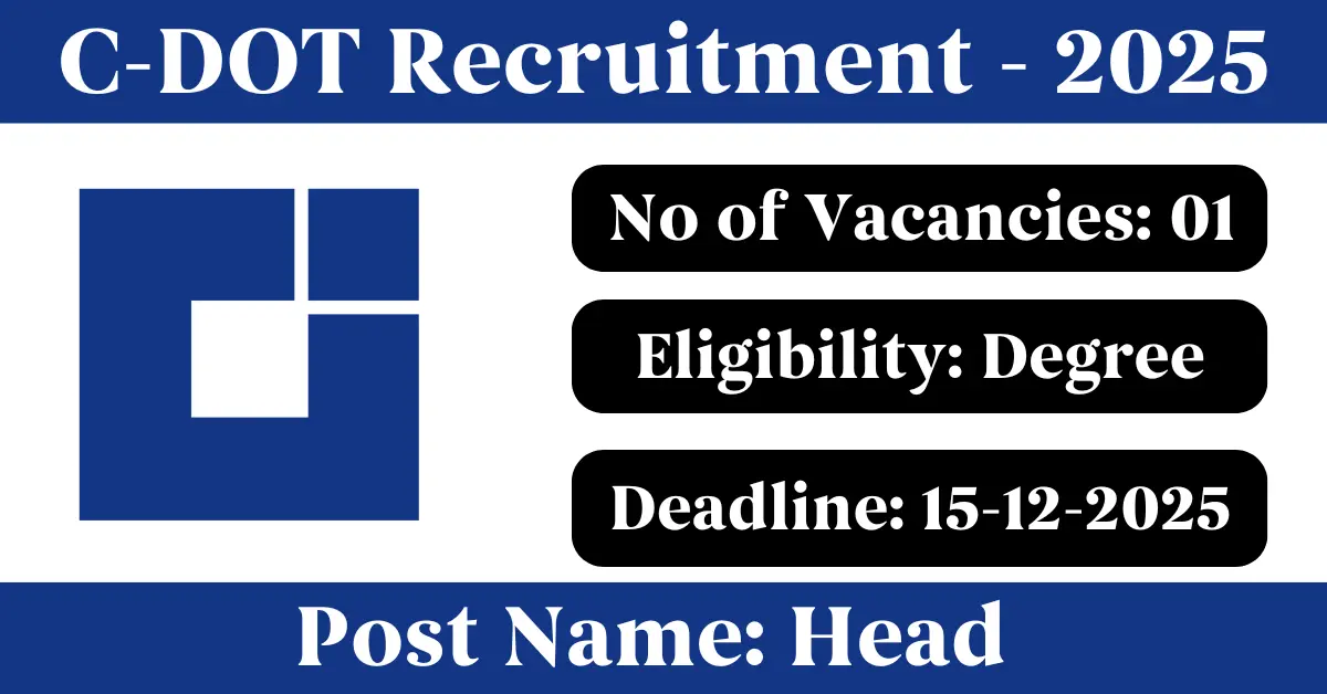C-DOT Recruitment 2025: Apply for 1 Head vacancies. Centre for Development of Telematics invited applications from eligible and interested candidates to fill up Head Posts through C-DOT official notification November 2025. Job seekers who are looking for a career in Delhi – New Delhi Government can make use of this opportunity. Interested candidates can Apply Offline on or before 15-Dec-2025