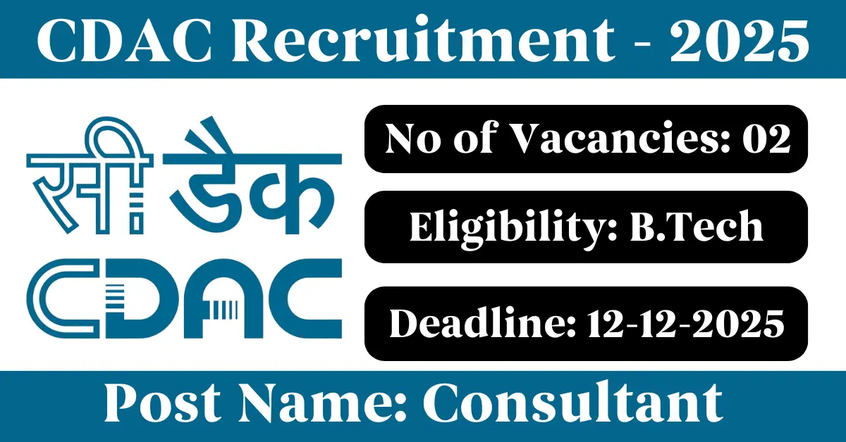CDAC Recruitment 2025: Apply for 2 Consultant vacancies. Centre for Development of Advanced Computing invited applications from eligible and interested candidates to fill up Consultant Posts through CDAC official notification November 2025. Job seekers who are looking for a career in Chennai – Tamil Nadu Government can make use of this opportunity. Interested candidates can attend for Walk-in-interview on 12-Dec-2025