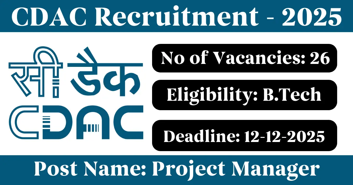 CDAC Recruitment 2025: Apply for 26 Project Manager vacancies. Centre for Development of Advanced Computing invited applications from eligible and interested candidates to fill up Project Manager Posts through CDAC official notification November 2025. Job seekers who are looking for a career in Noida – Uttar Pradesh Government can make use of this opportunity. Interested candidates can attend for Walk-in-interview on 12-Dec-2025