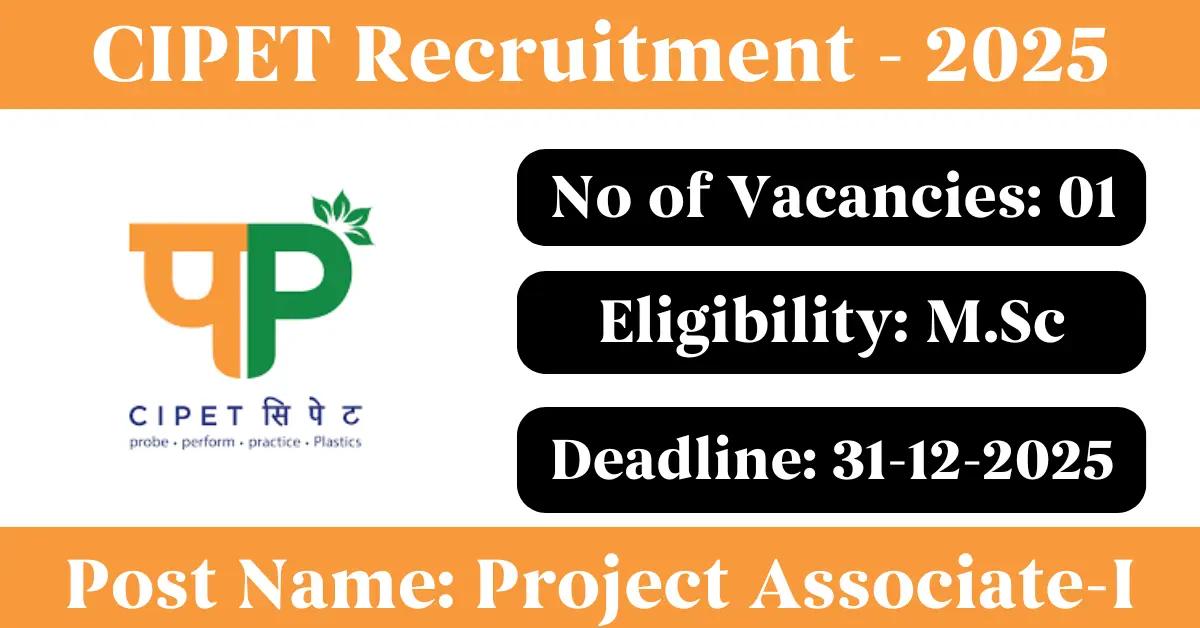 CIPET Recruitment 2025: Apply for 1 Project Associate-I vacancies. Central Institute of Plastics Engineering & Technology invited applications from eligible and interested candidates to fill up Project Associate-I Posts through CIPET official notification December 2025. Job seekers who are looking for a career in Bengaluru – Karnataka Government can make use of this opportunity. Interested candidates can Apply Offline on or before 31-Dec-2025