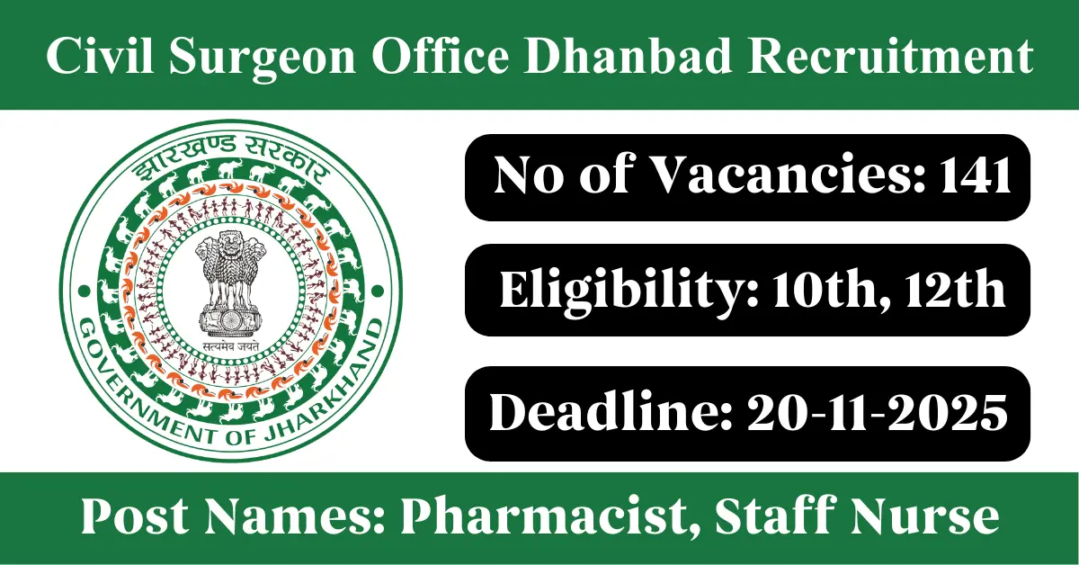 Civil Surgeon Office Dhanbad Recruitment 2025: Apply for 141 ANM, Staff Nurse vacancies. Civil Surgeon Office Dhanbad invited applications from eligible and interested candidates to fill up ANM, Staff Nurse Posts through Civil Surgeon Office Dhanbad official notification November 2025. Job seekers who are looking for a career in Dhanbad – Jharkhand Government can make use of this opportunity. Interested candidates can Apply Offline on or before 20-Nov-2025