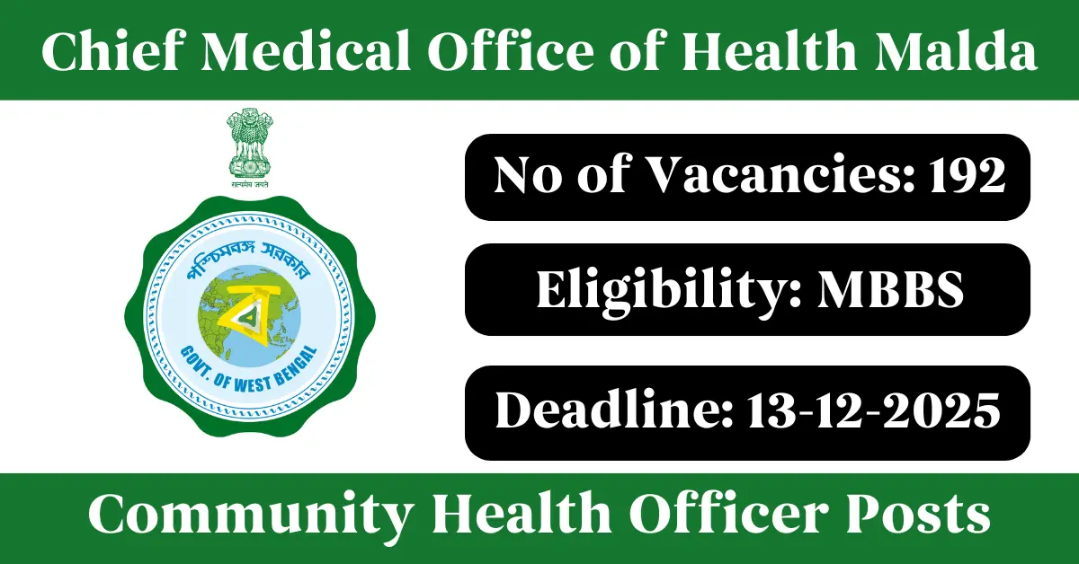 CMOH Malda Recruitment 2025: Apply for 192 Community Health Officer vacancies. Chief Medical Office of Health Malda invited applications from eligible and interested candidates to fill up Community Health Officer Posts through CMOH Malda official notification December 2025. Job seekers who are looking for a career in Malda – West Bengal Government can make use of this opportunity. Interested candidates can Apply Online on or before 13-Dec-2025