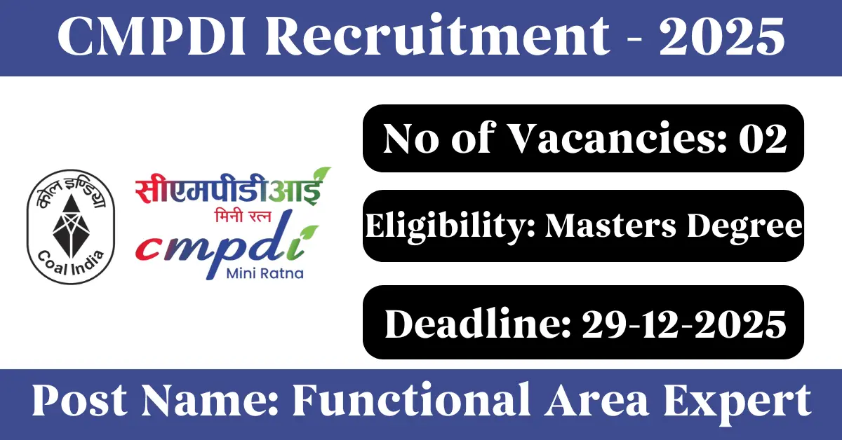CMPDI Recruitment 2025: Apply for 2 Functional Area Expert vacancies. Central Mine Planning & Design Institute Limited invited applications from eligible and interested candidates to fill up Functional Area Expert Posts through CMPDI official notification December 2025. Job seekers who are looking for a career in Ranchi – Jharkhand Government can make use of this opportunity. Interested candidates can Apply Offline on or before 29-Dec-2025