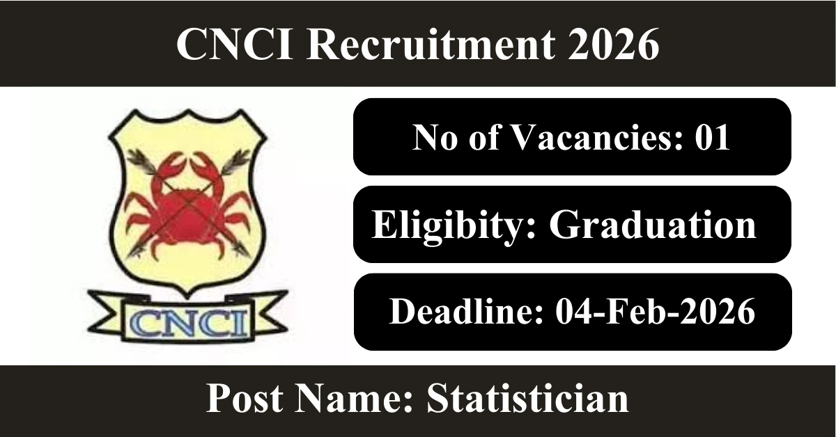 CNCI Recruitment 2026: Apply for 1 Statistician vacancies. Chittaranjan National Cancer Institute invited applications from eligible and interested candidates to fill up Statistician Posts through CNCI official notification January 2026. Job seekers who are looking for a career in Kolkata – West Bengal Government can make use of this opportunity. Interested candidates can attend for Walk-in-interview on 04-Feb-2026