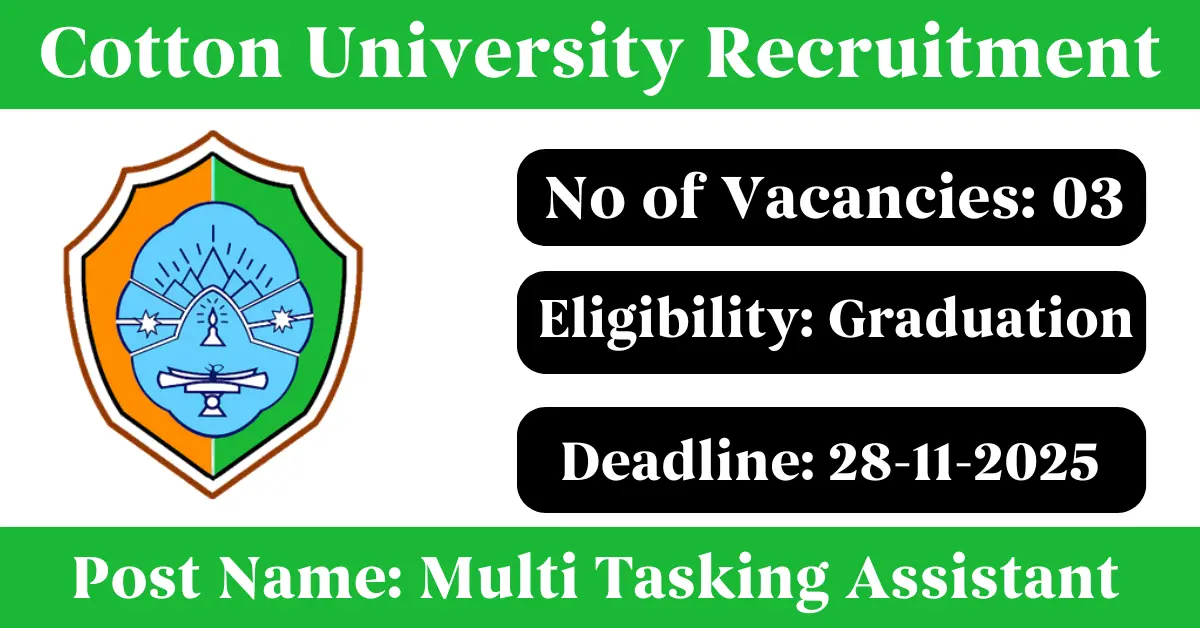 Cotton University Recruitment 2025: Apply for 3 Multi Tasking Assistant vacancies. Cotton University invited applications from eligible and interested candidates to fill up Multi Tasking Assistant Posts through Cotton University official notification November 2025. Job seekers who are looking for a career in Guwahati – Assam Government can make use of this opportunity. Interested candidates can attend for Walk-in-interview on 28-Nov-2025