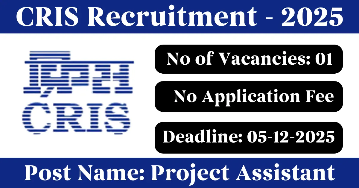 CRIS Recruitment 2025: Apply for 1 Project Assistant vacancies. Centre for Railway Information Systems invited applications from eligible and interested candidates to fill up Project Assistant Posts through CRIS official notification December 2025. Job seekers who are looking for a career in Delhi – New Delhi Government can make use of this opportunity. Interested candidates can Apply Offline on or before 05-Dec-2025