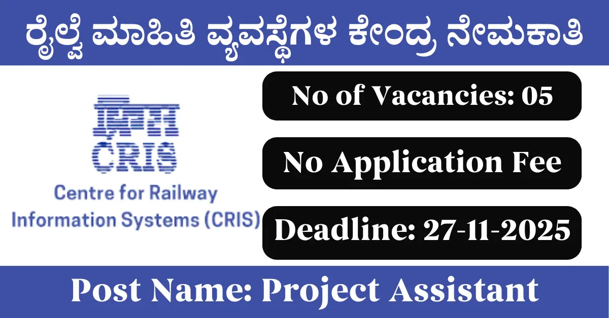 CRIS Recruitment 2025: Apply for 5 Project Assistant vacancies. Centre for Railway Information Systems invited applications from eligible and interested candidates to fill up Project Assistant Posts through CRIS official notification November 2025. Job seekers who are looking for a career in Delhi – New Delhi Government can make use of this opportunity. Interested candidates can Apply Offline on or before 27-Nov-2025