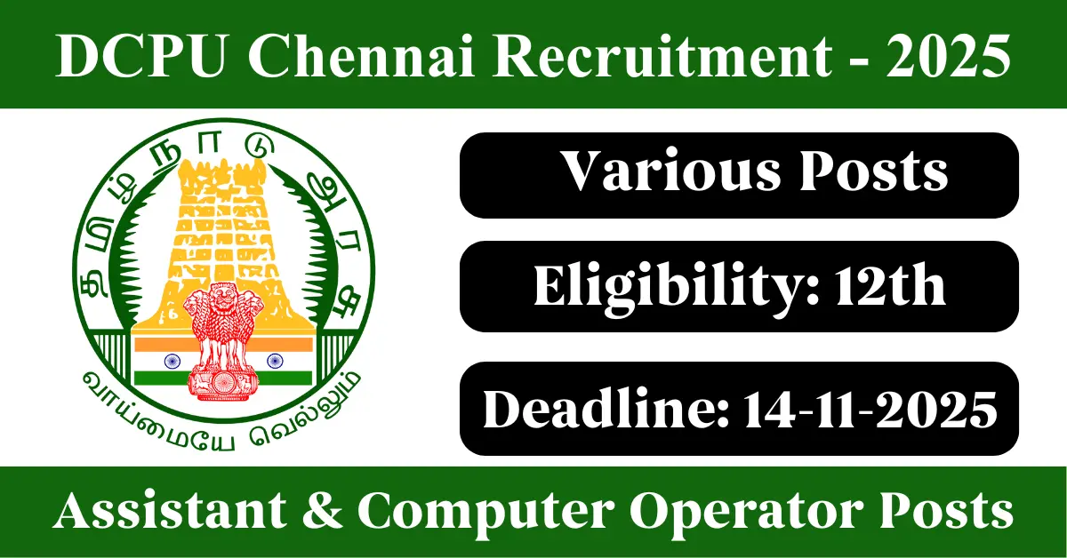 DCPU Chennai Recruitment 2025: Apply for Various Assistant/ Computer Operator vacancies. District Child Protection Unit Chennai invited applications from eligible and interested candidates to fill up Assistant/ Computer Operator Posts through DCPU Chennai official notification November 2025. Job seekers who are looking for a career in Chennai – Tamil Nadu Government can make use of this opportunity. Interested candidates can Apply Offline on or before 14-Nov-2025
