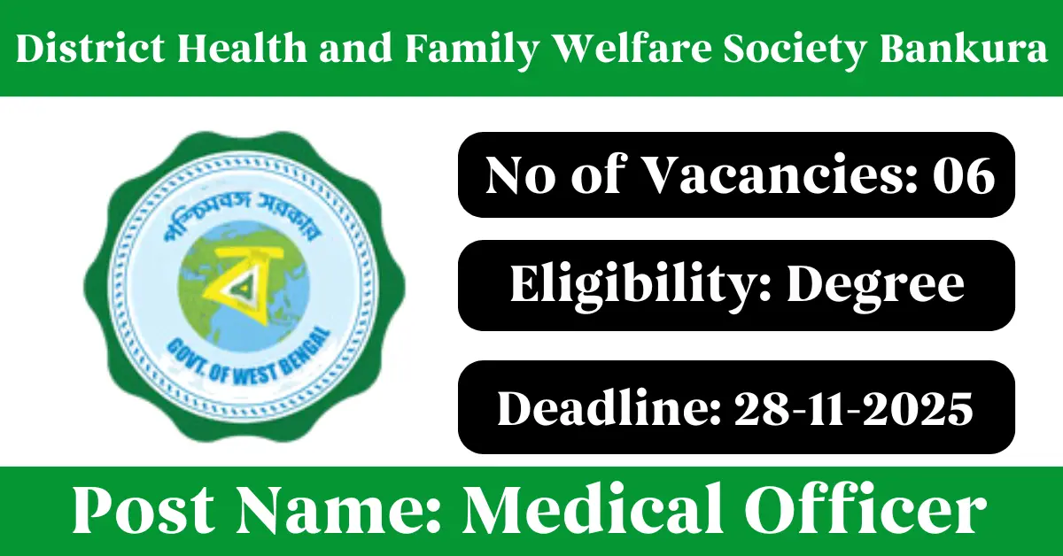 DHFWS Bankura Recruitment 2025: Apply for 6 Medical Officer vacancies. District Health and Family Welfare Society Bankura invited applications from eligible and interested candidates to fill up Medical Officer Posts through DHFWS Bankura official notification November 2025. Job seekers who are looking for a career in Bankura – West Bengal Government can make use of this opportunity. Interested candidates can Apply Online on or before 28-Nov-2025