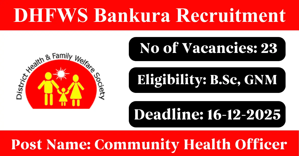 DHFWS Bankura Recruitment 2025: Apply for 23 Community Health Officer vacancies. District Health and Family Welfare Society Bankura invited applications from eligible and interested candidates to fill up Community Health Officer Posts through DHFWS Bankura official notification November 2025. Job seekers who are looking for a career in Bankura – West Bengal Government can make use of this opportunity. Interested candidates can attend for Walk-in-interview on 16-Dec-2025