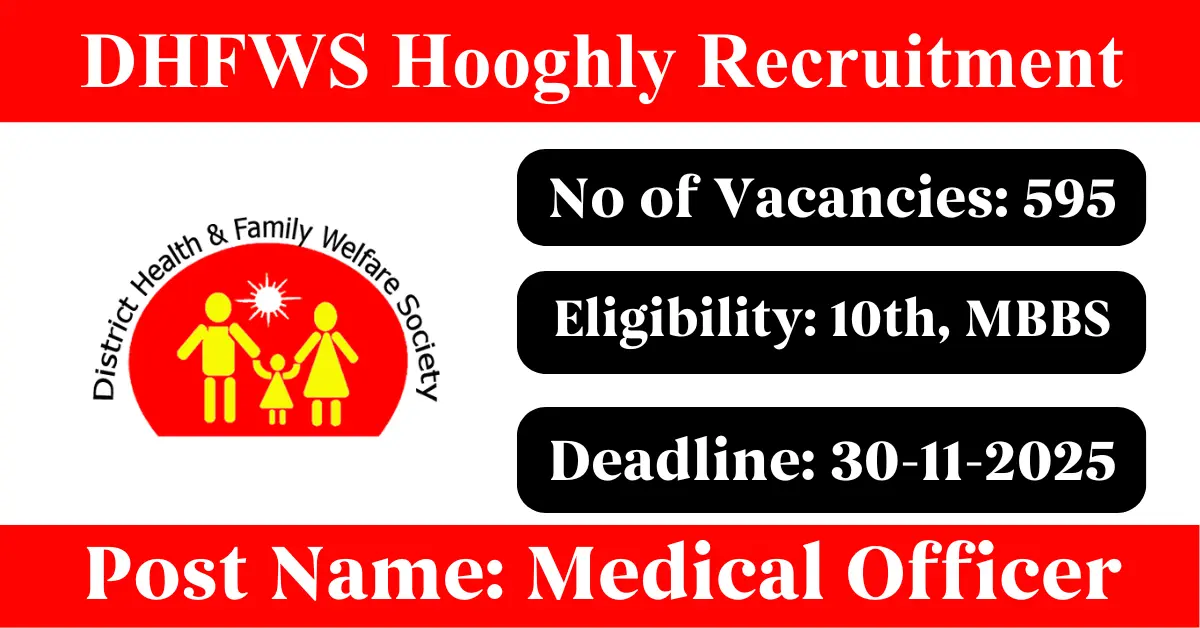 DHFWS Hooghly Recruitment 2025: Apply for 595 Medical Officer, Staff Nurse vacancies. District Health and Family Welfare Society Hooghly invited applications from eligible and interested candidates to fill up Medical Officer, Staff Nurse Posts through DHFWS Hooghly official notification November 2025. Job seekers who are looking for a career in Hooghly – West Bengal Government can make use of this opportunity. Interested candidates can Apply Online on or before 30-Nov-2025