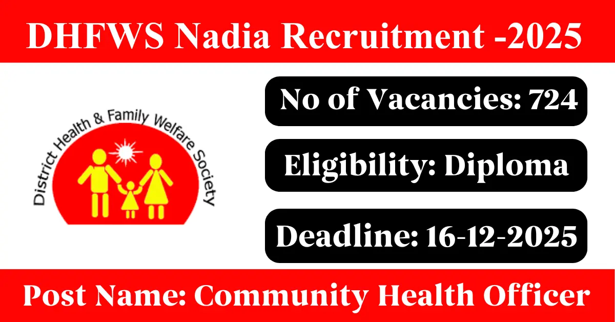 DHFWS Nadia Recruitment 2025: Apply for 724 Community Health Officer vacancies. District Health and Family Welfare Society Nadia invited applications from eligible and interested candidates to fill up Community Health Officer Posts through DHFWS Nadia official notification November 2025. Job seekers who are looking for a career in Nadia – West Bengal Government can make use of this opportunity. Interested candidates can Apply Online on or before 16-Dec-2025