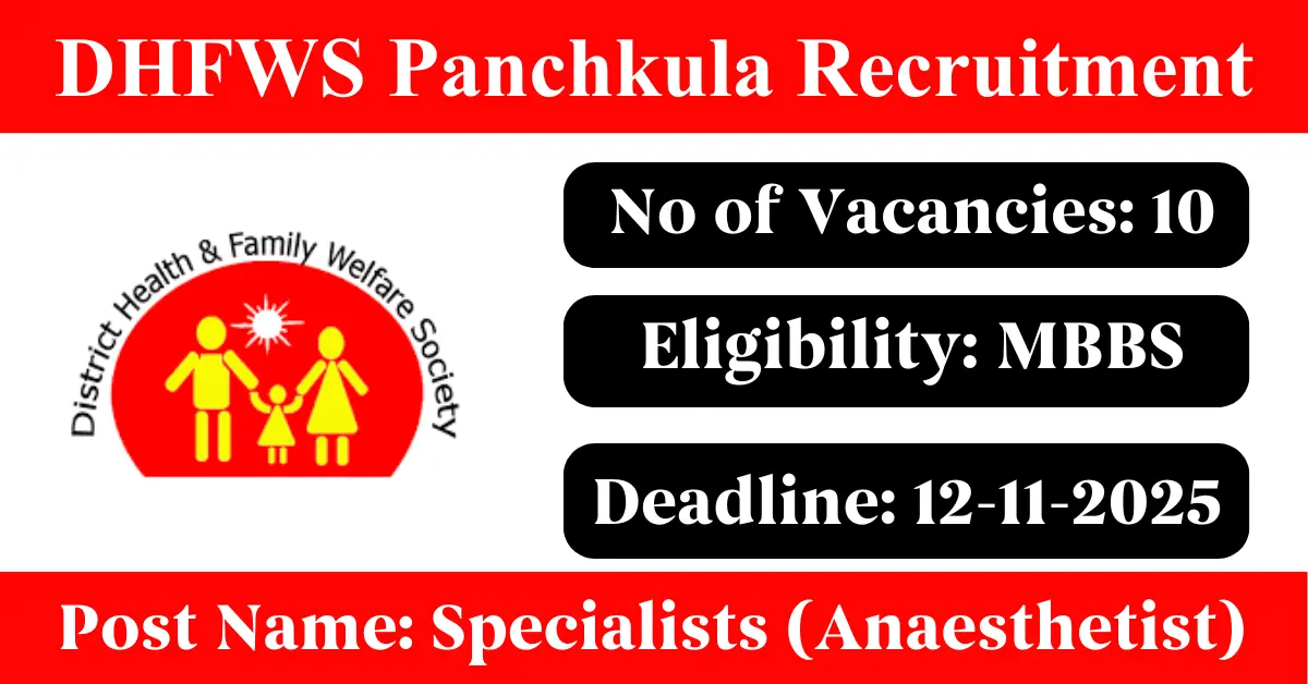 DHFWS Panchkula Recruitment 2025: Apply for 10 Specialists vacancies. District Health and Family Welfare Society Panchkula invited applications from eligible and interested candidates to fill up Specialists Posts through DHFWS Panchkula official notification November 2025. Job seekers who are looking for a career in Panchkula – Haryana Government can make use of this opportunity. Interested candidates can attend for Walk-in-interview on 12-Nov-2025