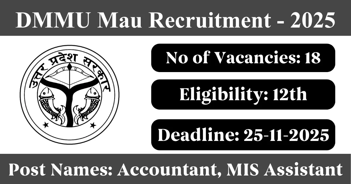 DMMU Mau Recruitment 2025: Apply for 18 Accountant vacancies. District Mission Management Unit Mau invited applications from eligible and interested candidates to fill up Accountant Posts through DMMU Mau official notification November 2025. Job seekers who are looking for a career in Mau – Uttar Pradesh Government can make use of this opportunity. Interested candidates can Apply Offline on or before 25-Nov-2025