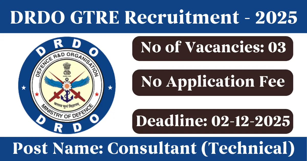 DRDO GTRE Recruitment 2025: Apply for 3 Consultant vacancies. DRDO Gas Turbine Research Establishment invited applications from eligible and interested candidates to fill up Consultant Posts through DRDO GTRE official notification November 2025. Job seekers who are looking for a career in Bengaluru – Karnataka Government can make use of this opportunity. Interested candidates can Apply Offline on or before 02-Dec-2025