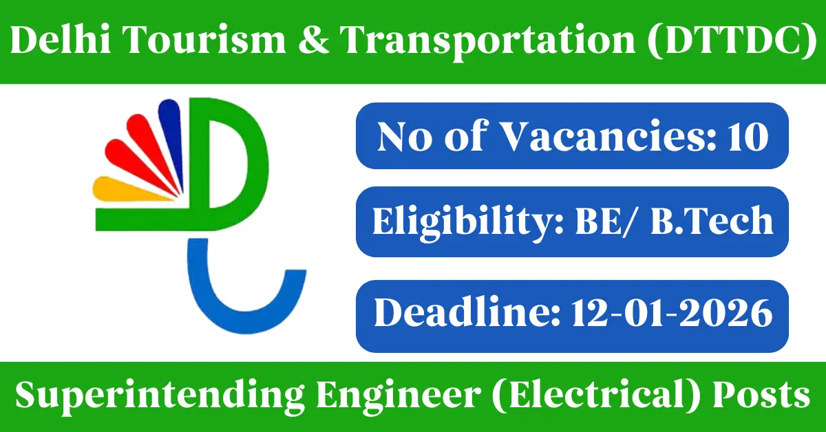 DTTDC Recruitment 2025: Apply for 10 Engineer vacancies. Delhi Tourism & Transportation Development Corporation invited applications from eligible and interested candidates to fill up Engineer Posts through DTTDC official notification November 2025. Job seekers who are looking for a career in Delhi – New Delhi Government can make use of this opportunity. Interested candidates can Apply Offline on or before 12-Jan-2026