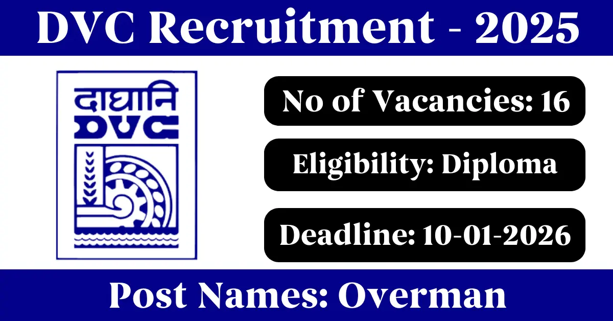 DVC Recruitment 2025: Apply for 16 Overman vacancies. Damodar Valley Corporation invited applications from eligible and interested candidates to fill up Overman Posts through DVC official notification December 2025. Job seekers who are looking for a career in Jharkhand, West Bengal Government can make use of this opportunity. Interested candidates can Apply Online on or before 10-Jan-2026