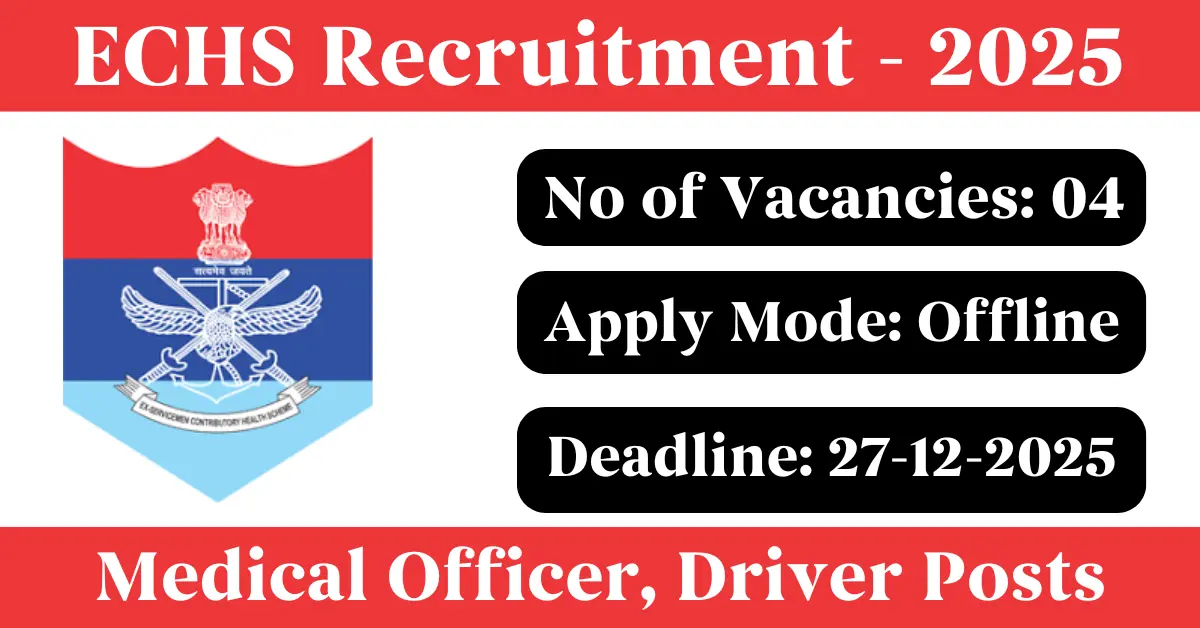 ECHS Recruitment 2025: Apply for 4 Medical Officer, Driver vacancies. Ex-Servicemen Contributory Health Scheme invited applications from eligible and interested candidates to fill up Medical Officer, Driver Posts through ECHS official notification December 2025. Job seekers who are looking for a career in Dehradun – Uttarakhand Government can make use of this opportunity. Interested candidates can Apply Offline on or before 27-Dec-2025