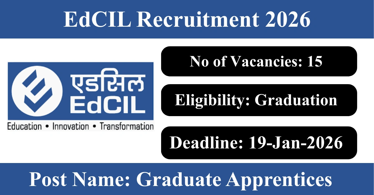EdCIL Recruitment 2026: Apply for 15 Graduate Apprentices vacancies. Educational Consultants India Limited invited applications from eligible and interested candidates to fill up Graduate Apprentices Posts through EdCIL official notification January 2026. Job seekers who are looking for a career in Delhi – New Delhi Government can make use of this opportunity. Interested candidates can Apply Online on or before 19-Jan-2026