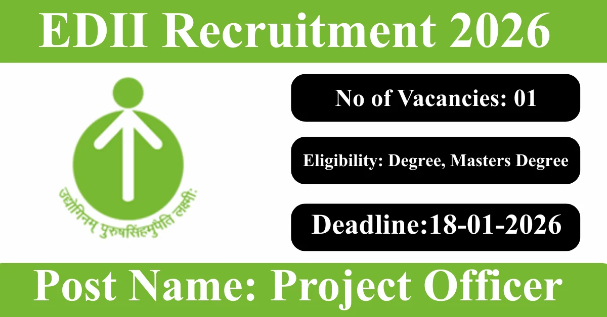EDII Recruitment 2026: Apply for 1 Project Officer vacancies. Entrepreneurship Development Institute of India invited applications from eligible and interested candidates to fill up Project Officer Posts through EDII official notification January 2026. Job seekers who are looking for a career in Puducherry Government can make use of this opportunity. Interested candidates can send an E-Mail on or before 18-Jan-2026