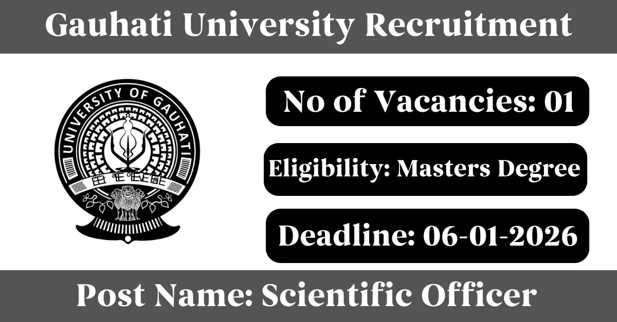 Gauhati University Recruitment 2025: Apply for 1 Scientific Officer vacancies. Gauhati University invited applications from eligible and interested candidates to fill up Scientific Officer Posts through Gauhati University official notification December 2025. Job seekers who are looking for a career in Guwahati – Assam Government can make use of this opportunity. Interested candidates can Apply Online/Offline on or before 06-Jan-2026