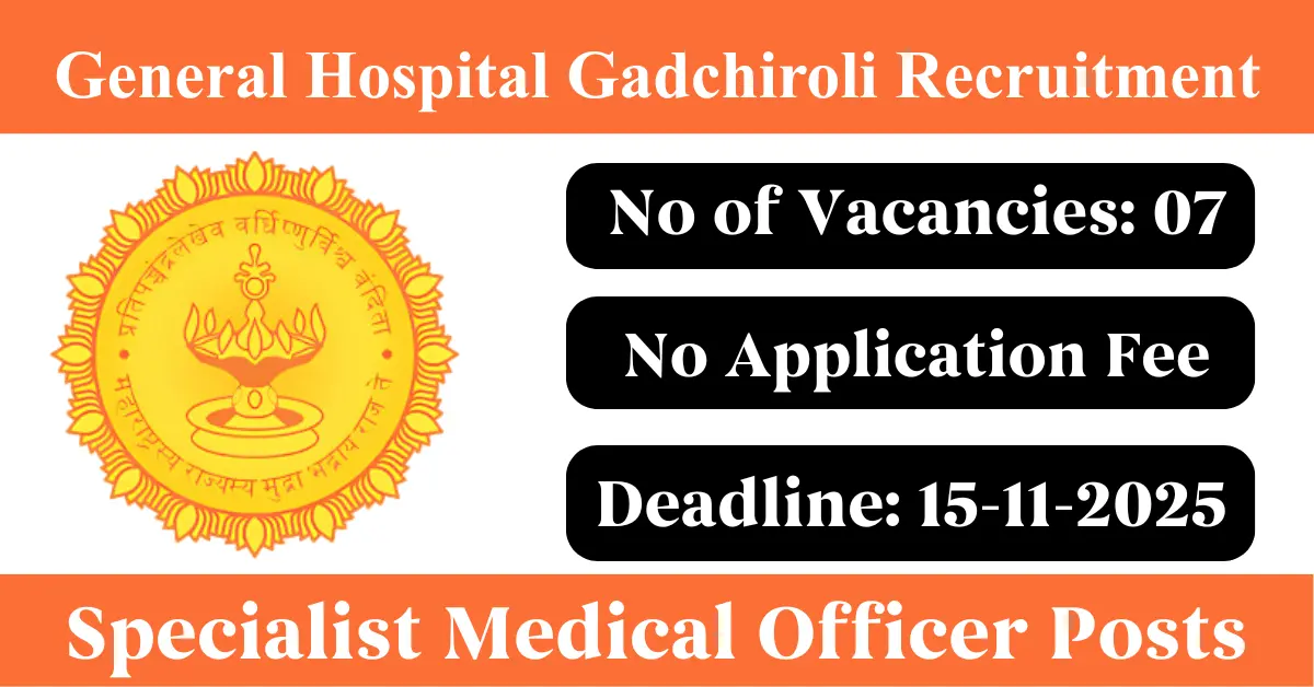 General Hospital Gadchiroli Recruitment 2025: Apply for 7 Specialist Medical Officer vacancies. General Hospital Gadchiroli invited applications from eligible and interested candidates to fill up Specialist Medical Officer Posts through General Hospital Gadchiroli official notification November 2025. Job seekers who are looking for a career in Gadchiroli – Maharashtra Government can make use of this opportunity. Interested candidates can attend for Walk-in-interview on 15-Nov-2025