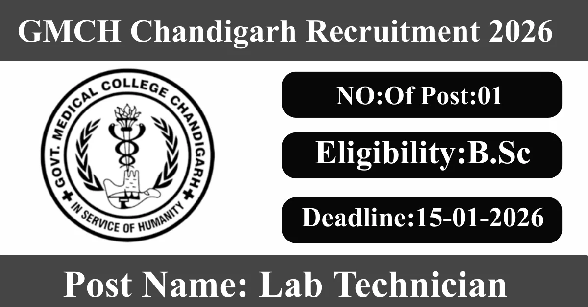 GMCH Chandigarh Recruitment 2026: Apply for 1 Lab Technician vacancies. Government Medical College and Hospital Chandigarh invited applications from eligible and interested candidates to fill up Lab Technician Posts through GMCH Chandigarh official notification January 2026. Job seekers who are looking for a career in Chandigarh Government can make use of this opportunity. Interested candidates can Apply Offline on or before 15-Jan-2026
