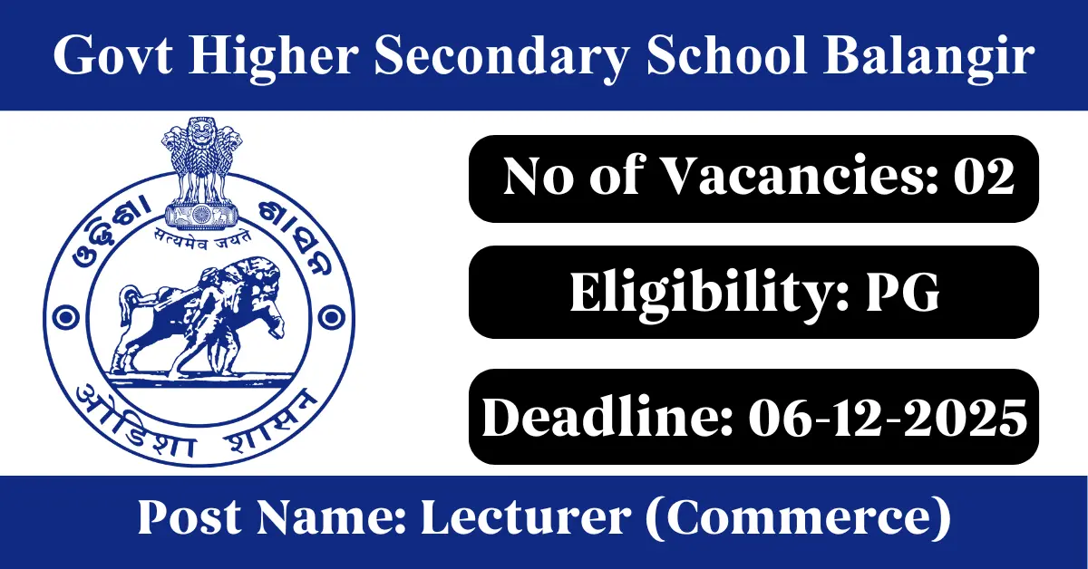 Govt Higher Secondary School Balangir Recruitment 2025: Apply for 2 Lecturer vacancies. Govt Higher Secondary School Balangir invited applications from eligible and interested candidates to fill up Lecturer Posts through Govt Higher Secondary School Balangir official notification November 2025. Job seekers who are looking for a career in Balangir – Odisha Government can make use of this opportunity. Interested candidates can attend for Walk-in-interview on 06-Dec-2025