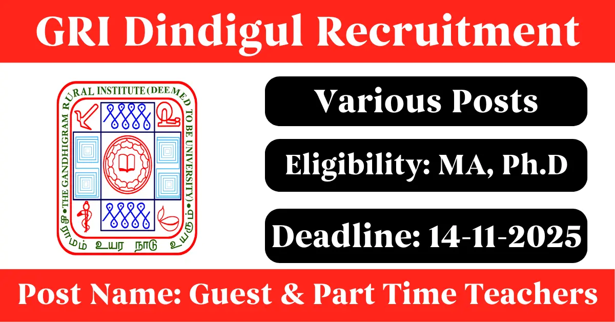GRI Dindigul Recruitment 2025: Apply for Various Guest/Part Time Teachers vacancies. Gandhigram Rural Institute invited applications from eligible and interested candidates to fill up Guest/Part Time Teachers Posts through GRI Dindigul official notification November 2025. Job seekers who are looking for a career in Dindigul – Tamil Nadu Government can make use of this opportunity. Interested candidates can attend for Walk-in-interview on 14-Nov-2025