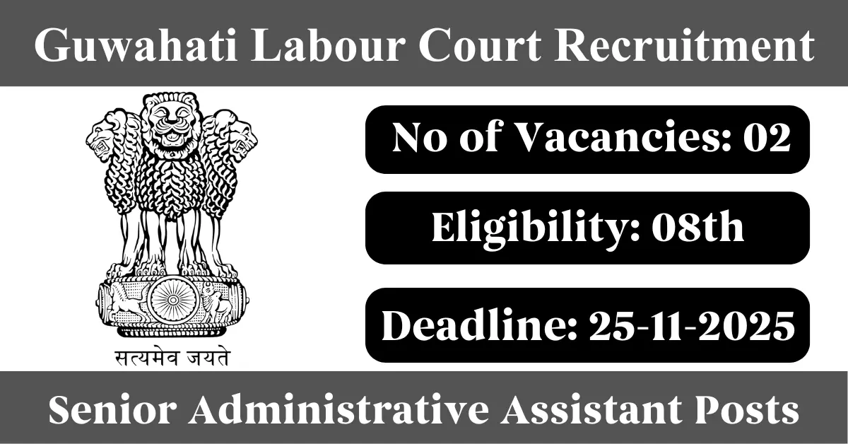 Guwahati Labour Court Recruitment 2025: Apply for 2 Senior Administrative Assistant vacancies. Guwahati Labour Court invited applications from eligible and interested candidates to fill up Senior Administrative Assistant Posts through Guwahati Labour Court official notification November 2025. Job seekers who are looking for a career in Guwahati – Assam Government can make use of this opportunity. Interested candidates can Apply Offline on or before 25-Nov-2025