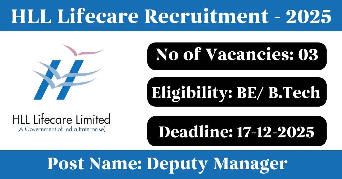 HLL Lifecare Recruitment 2025: Apply for 3 Senior Manager/ Manager/ Deputy Manager vacancies. HLL Lifecare Limited invited applications from eligible and interested candidates to fill up Senior Manager/ Manager/ Deputy Manager Posts through HLL Lifecare official notification December 2025. Job seekers who are looking for a career in Chandigarh, Rajasthan, Faridkot – Punjab Government can make use of this opportunity. Interested candidates can Apply Online on or before 17-Dec-2025