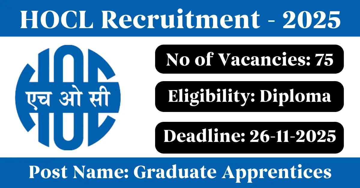 HOCL Recruitment 2025: Apply for 75 Apprentices vacancies. Hindustan Organic Chemicals Limited invited applications from eligible and interested candidates to fill up Apprentices Posts through HOCL official notification November 2025. Job seekers who are looking for a career in Ernakulam – Kerala Government can make use of this opportunity. Interested candidates can Apply Online on or before 26-Nov-2025