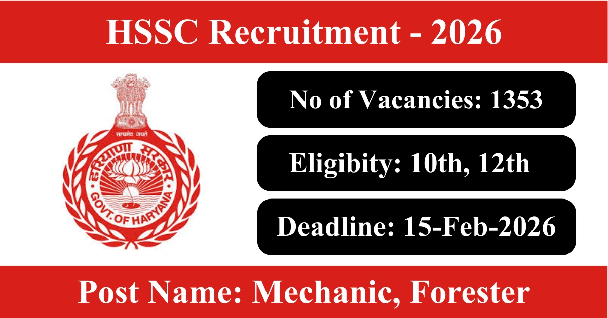 HSSC Recruitment 2026: Apply for 1353 Mechanic, Forester vacancies. Haryana Staff Selection Commission invited applications from eligible and interested candidates to fill up Mechanic, Forester Posts through HSSC official notification January 2026. Job seekers who are looking for a career in Haryana Government can make use of this opportunity. Interested candidates can Apply Online on or before 15-Feb-2026