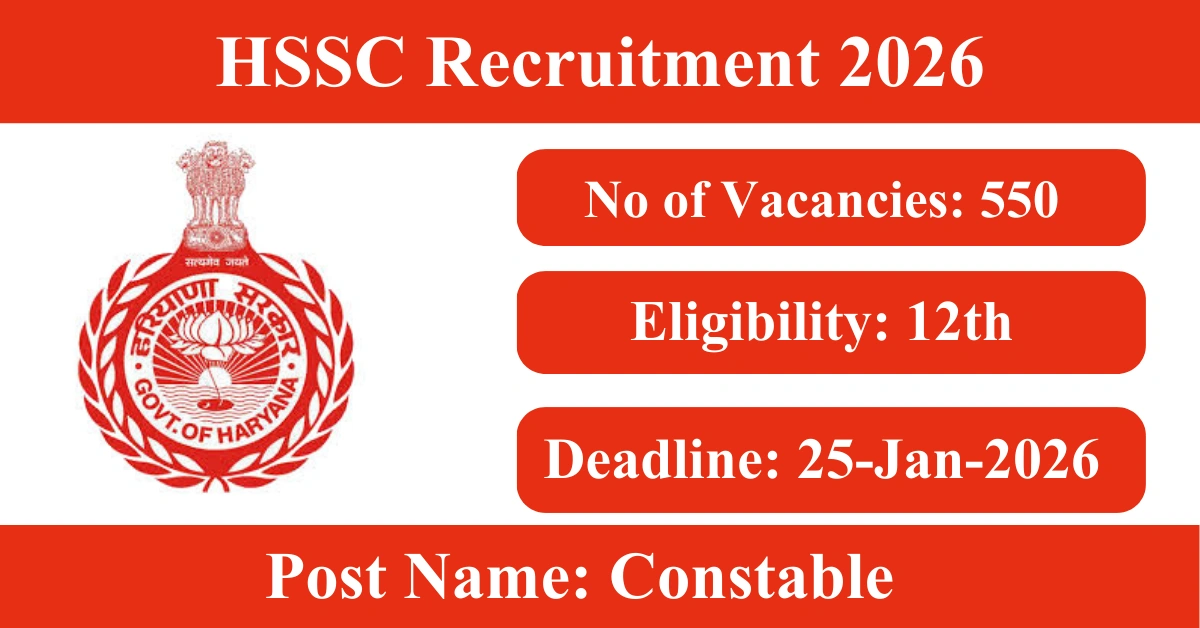 HSSC Recruitment 2026: Apply for 5500 Constable vacancies. Haryana Staff Selection Commission invited applications from eligible and interested candidates to fill up Constable Posts through HSSC official notification January 2026. Job seekers who are looking for a career in Haryana Government can make use of this opportunity. Interested candidates can Apply Online on or before 25-Jan-2026